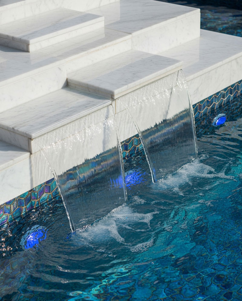 Cascading waterfalls, deck jets, and bubblers.