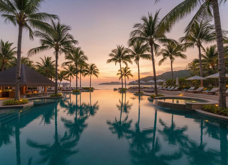Natural curves, rock features, and tropical aesthetics.