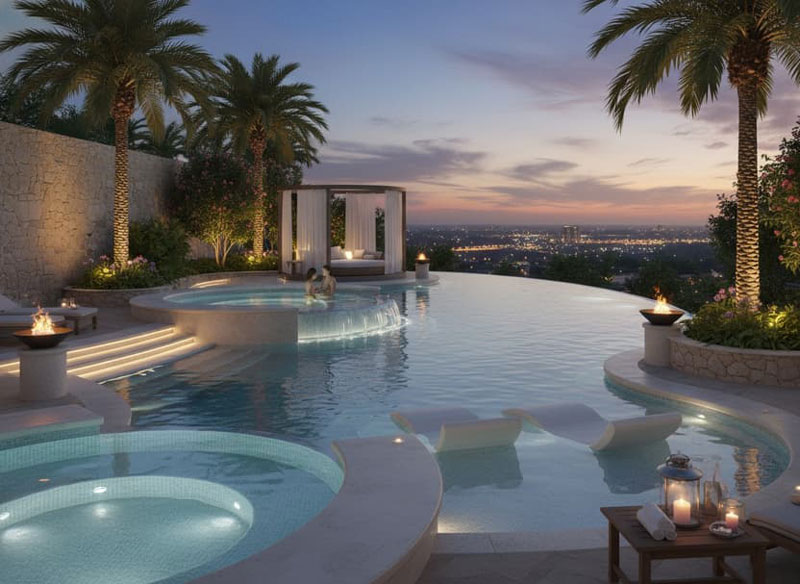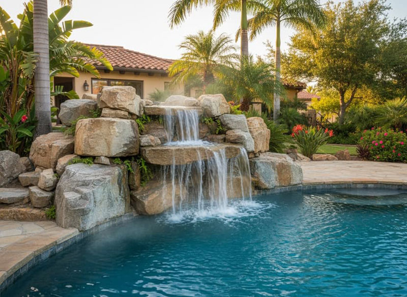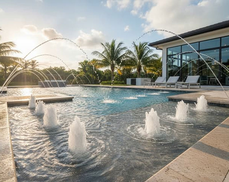 Enhance your custom swimming pool in Orlando with luxury spa features, waterfalls, jets, and modern water elements.